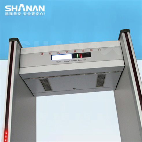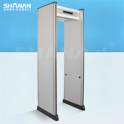 通過式金屬探測器,門中建立有電磁場,當人體攜帶金屬物品通過時能產生報警的裝置,能準確探測到人身上或手提包箱中攜帶的金屬物品或含有金屬的物品,如各種管制刀具、武器、金屬制品、電子產品及其他含有金屬的物品等,用來進行安全檢查、防偷竊檢查的一種有效工具。能有效避免傳統人工搜身檢查帶來的人權糾紛.