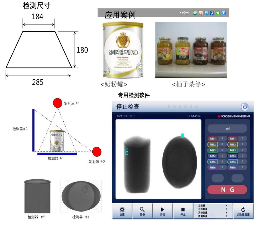 | 4 | 豐富的拓展功能:多點遺漏檢測,缺陷檢測(產品缺陷,包裝缺陷)屏蔽分段檢測,液位高度檢測,高速剔除檢測,遠程遙控控制,綜合實時管理等功能。 |