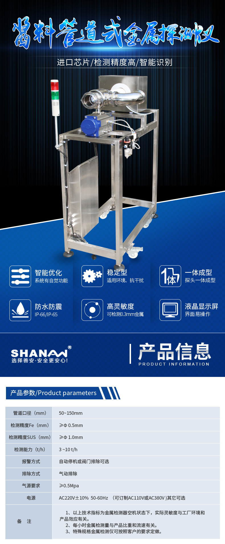| 1 | 核心部分采用領先的數碼技術和原裝進口芯片精心研制,探測線圈內部采用灌封方式一次成型,具有檢測精度高,性能穩定,抗外界干擾能力強等特點。 |