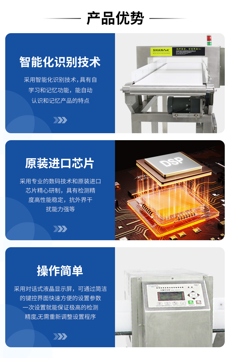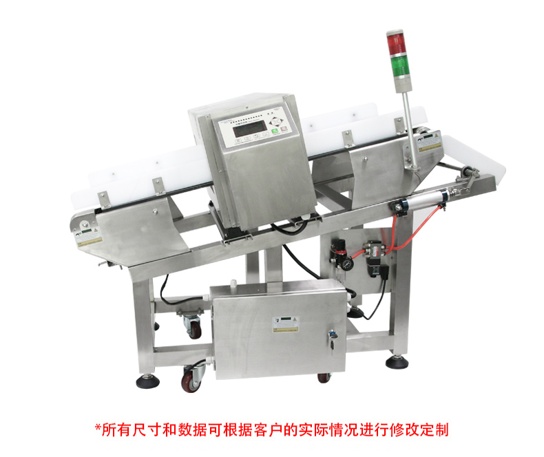 全數字金屬檢測機推出新一代微電腦智能型高靈敏度,高可靠性觸摸屏界面金屬檢測機,產品采用雙回路電路設計,7寸超大全彩色波晶觸摸屏,操作更方便,更直觀,此全金屬檢測機器,可檢測鐵和非鐵等金屬,靈敏度可調節,帶記憶功能可預設100種檢測產品的參數,突破大部分設備只對磁性物質反應靈敏的技術瓶頸,檢測機器采用聲光報警,同時自動停機,或報警不停機,可加裝剔除功能,防腐蝕、不生銹、易清洗。因此廣泛應用于食品、藥品、玩具、化工等要求高的物體里的金屬檢測。