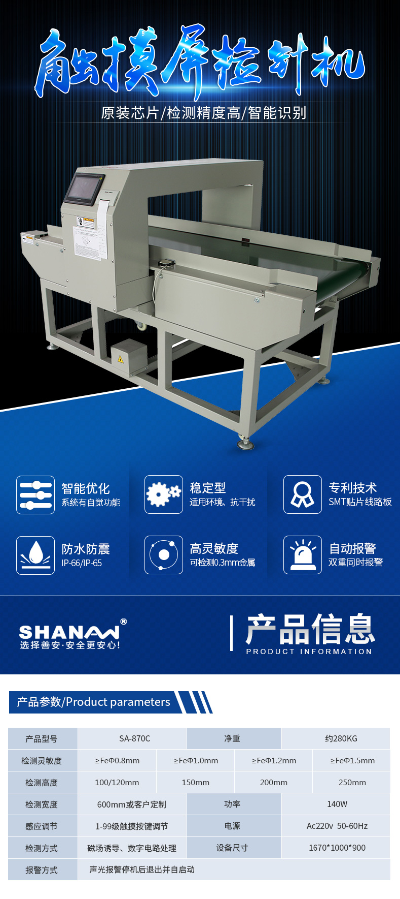玩具、服裝、制鞋、化工、皮革、針織等需要檢測鐵磁性金屬雜質檢出的行業,用于檢測夾雜或失落于原料或產品中的斷針、鐵絲等鐵磁性有色金屬,對于極嚴格要求金屬檢測的產品特別適合,并能準確識別出斷針(金屬雜質)所在的位置。提高產品安全系數,減少危害。