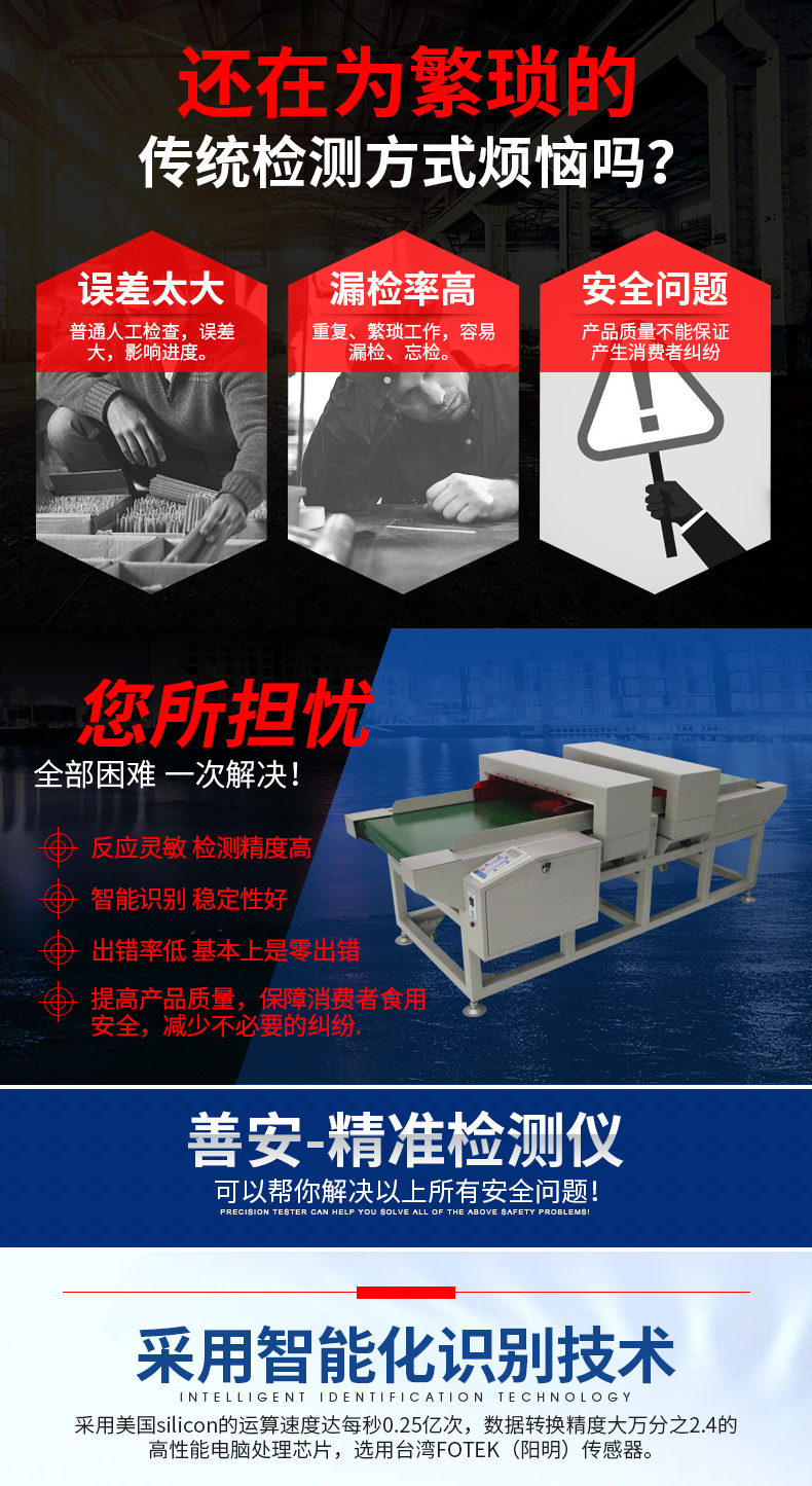 玩具、服裝、制鞋、化工、皮革、針織等需要檢測(cè)鐵磁性金屬雜質(zhì)檢出的行業(yè),用于檢測(cè)夾雜或失落于原料或產(chǎn)品中的斷針、鐵絲等鐵磁性有色金屬,對(duì)于極嚴(yán)格要求金屬檢測(cè)的產(chǎn)品特別適合,并能準(zhǔn)確識(shí)別出斷針(金屬雜質(zhì))所在的位置。提高產(chǎn)品安全系數(shù),減少危害。