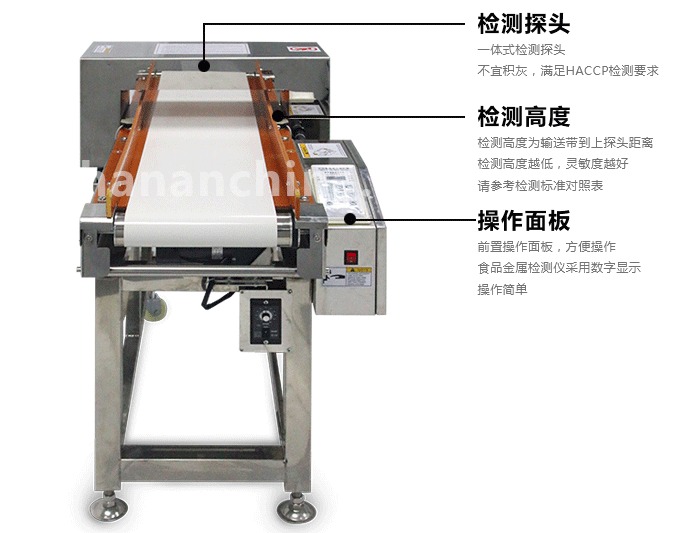 | 9 | 先進(jìn)智能程控系統(tǒng),可設(shè)置檢測到金屬時輸送帶倒帶時間及距離的設(shè)定。 |