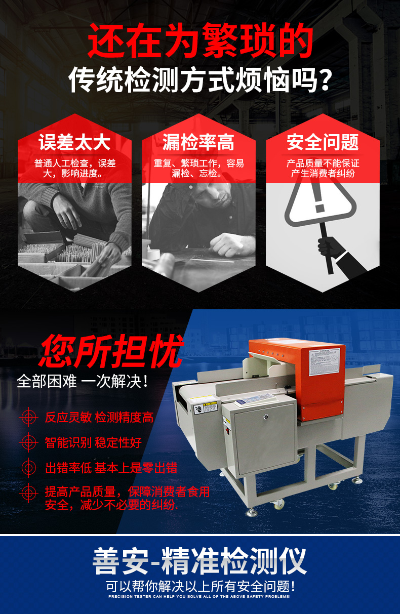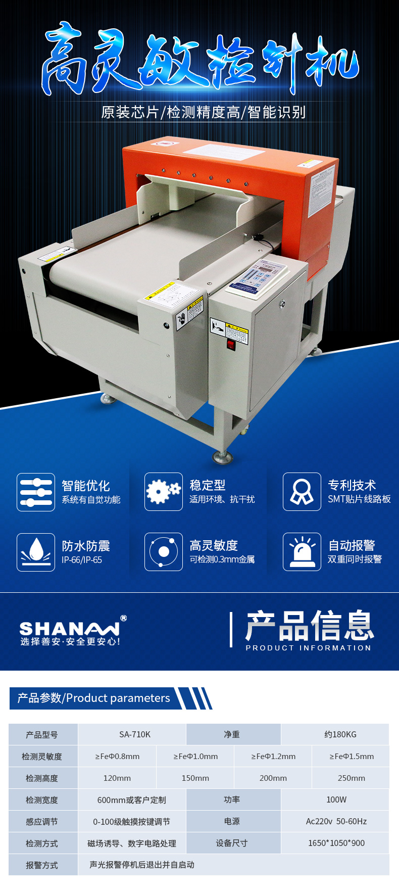玩具、服裝、制鞋、化工、皮革、針織等需要檢測鐵磁性金屬雜質檢出的行業,用于檢測夾雜或失落于原料或產品中的斷針、鐵絲等鐵磁性有色金屬,對于極嚴格要求金屬檢測的產品特別適合,并能準確識別出斷針(金屬雜質)所在的位置。提高產品安全系數,減少危害。