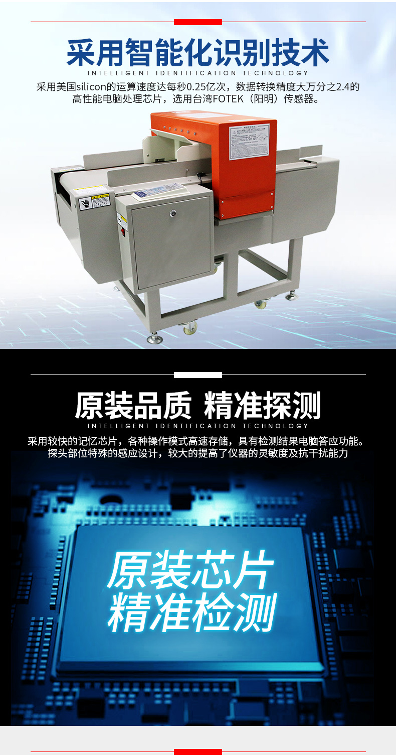 1 采用美國silicon的運算速度達每秒0.25億次,數據轉換精度大萬分之2.4的高性能電腦處理芯片,選用臺灣FOTEK(陽明)傳感器,潤士Habasit(哈伯西特)輸送帶