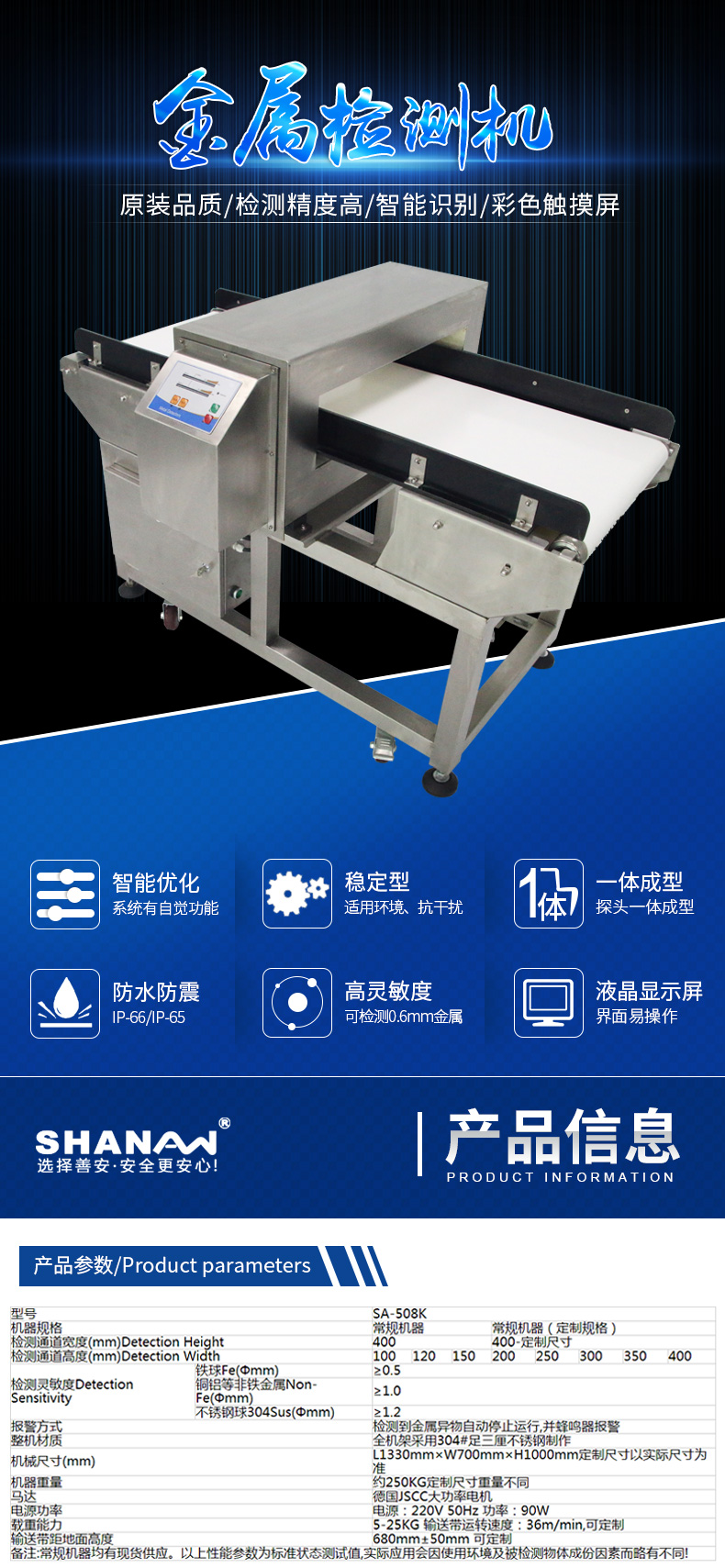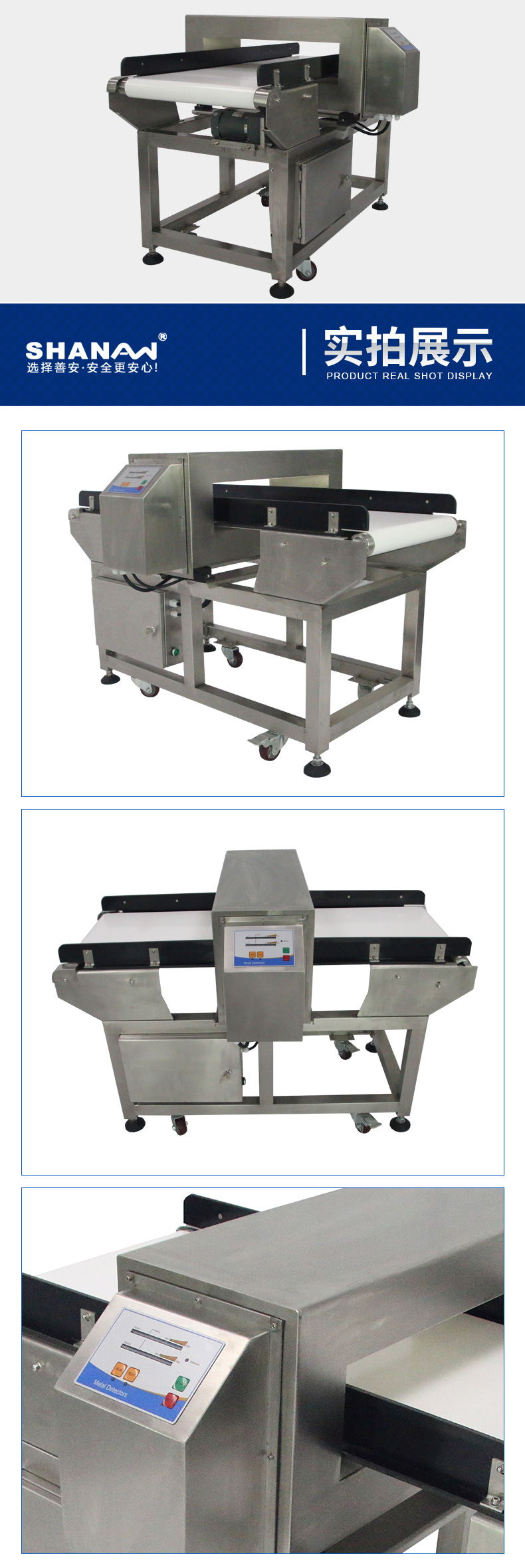食品、藥品、水產(chǎn)品、玩具、服裝、制鞋、化工、皮革、針織、印刷等行業(yè)檢測(cè)產(chǎn)品或原料在生產(chǎn)過(guò)程中混入的金屬雜質(zhì)。如:鐵、非磁性金屬物品(金、銀、銅、鋁、不銹鋼等有色金屬都可以檢測(cè)出),提高產(chǎn)品安全系數(shù),減少危害。